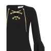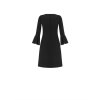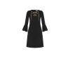 S kvalitními klasickými černými šaty v tomto stylu rozhodně nic nezkazíte, ať už je využijete do práce, na oslavu, pracovní pohovor nebo někam do společnosti. Zajímavostí na šatech jsou zvoncové rukávy a zlatý řetízek v oblasti dekoltu, kterým si můžete regulovat výstřih na šatech. Šaty mají příjemný materiál. Řetízek je ve zlaté barvě. Nemají zapínání, provlékají se přes hlavu.