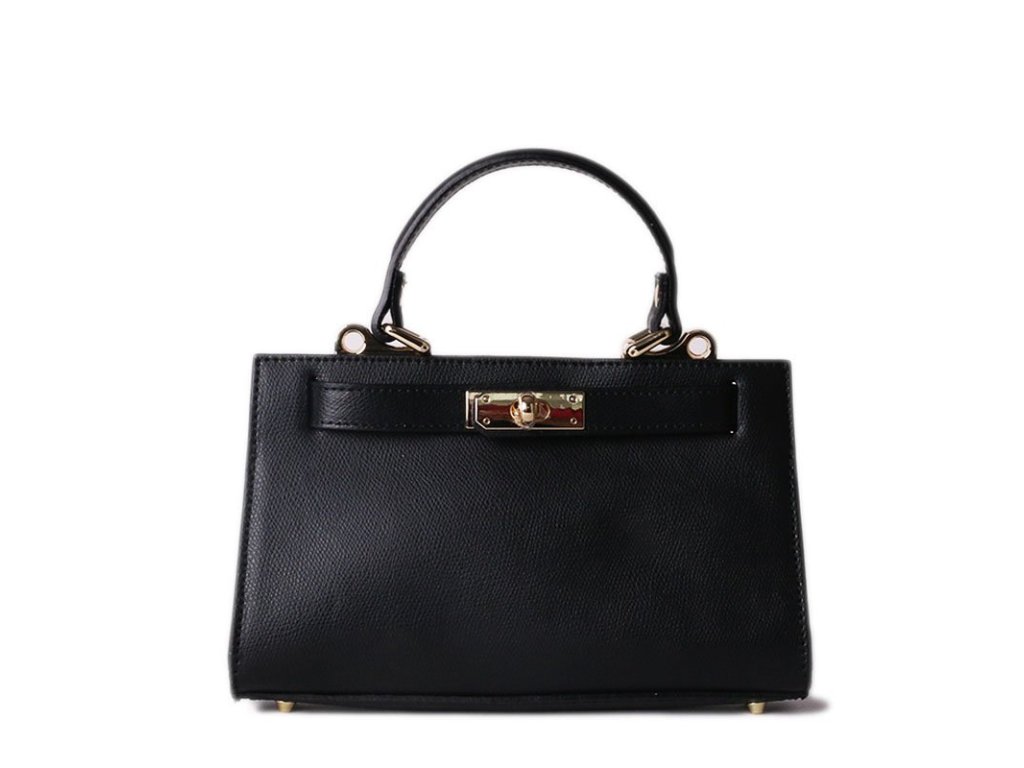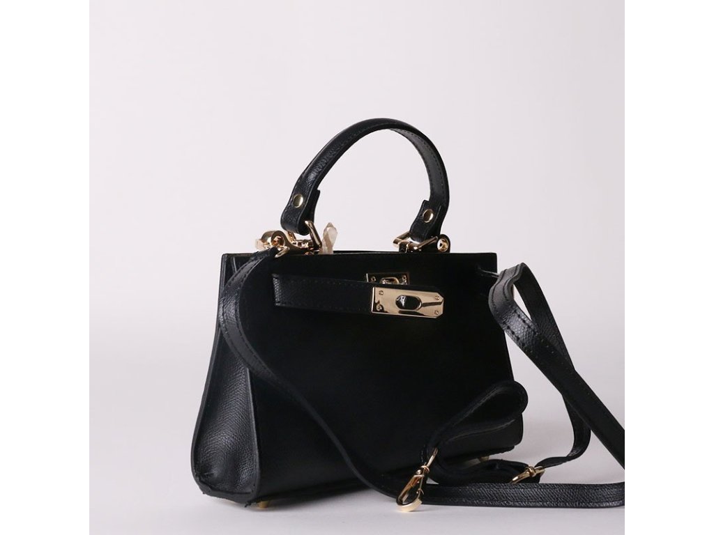 Zaujala vás tato kabelka, jejíž design připomíná celosvětově známou kabelku Hermes? Ani se vám nedivíme. Jedná se o velmi rozkošnou stylovou kabelku v černé barvě. Tato kabelka šitá v Itálii Vera Pelle je v černé barvě a spolu se zlatým kováním působí přímo exkluzivně. Je ideální pro nošení v ruce, crossbody, ale i na rameni. Má dlouhý regulovatelný, ale také odepínatelný popruh s maximální délkou 120cm. Kování je ve zlaté barvě. Vnitřek tvoří podšívka s otevřenou kapsou na dokumenty. Je šitá z pravé kůže v Itálii.