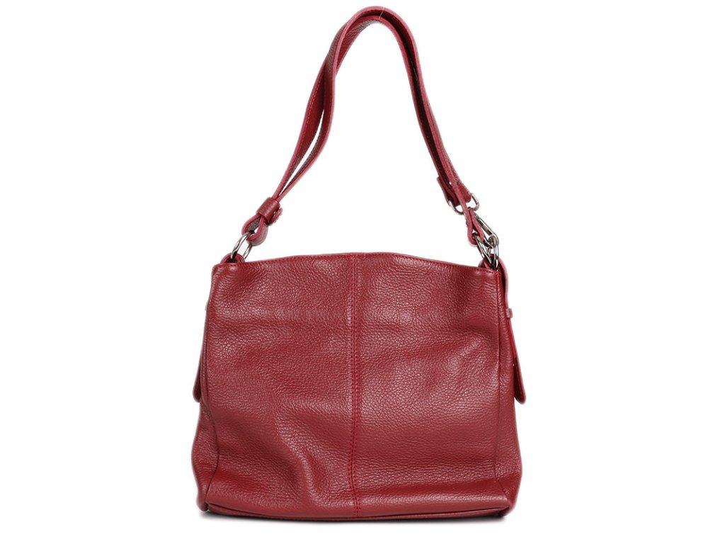 Nabízíme vám pěknou a praktickou dámskou středně velkou koženou kabelku v bordó barve se dvěma komorami. Určitě vám bude dobrou společnicí kamkoli se pohnete. Zajímavý detail na přední straně tvoří zip se zapínáním směrem zdola nahoru. Praktický vnitřek kabelky se skládá ze dvou komor zapínaných zipem, které se společně zapínají magnetem, což umožňuje lepší organizaci a pořádek. Kabelka je vyrobena v Itálii z nejkvalitnější, pravé, měkké kůže. Hlavní zapínání je na zip a magnet, kování má stříbrnou barvu.