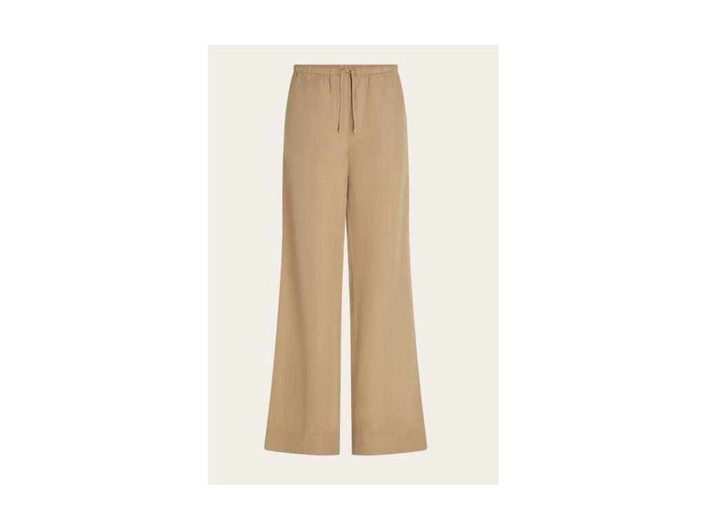 Pas je řešen elasticky s jemným stažením na šňůrku, což zajišťuje pohodlí při nošení a zároveň vytváří pěknou siluetu. Kalhoty mají praktické boční kapsy a jejich délka opticky prodlužuje postavu.