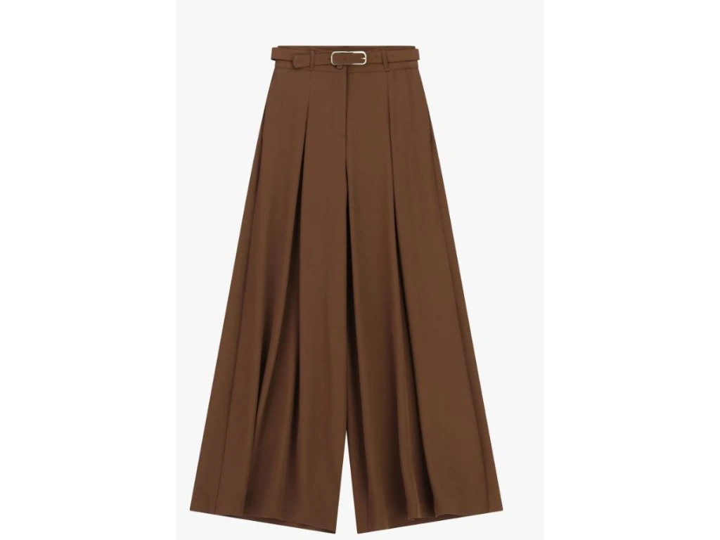 Elegantní dámské kalhoty spojují styl s maximálním pohodlím. Vysoký pas s páskem krásně zvýrazní postavu a dodá outfitu upravený, sofistikovaný vzhled. Široké nohavice s jemným řasením působí lehce a vzdušně, takže se hodí jak na běžné nošení, tak i na formálnější příležitosti.