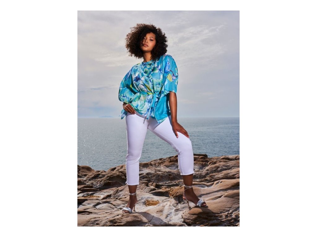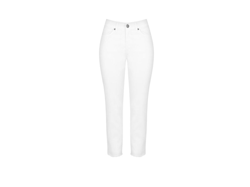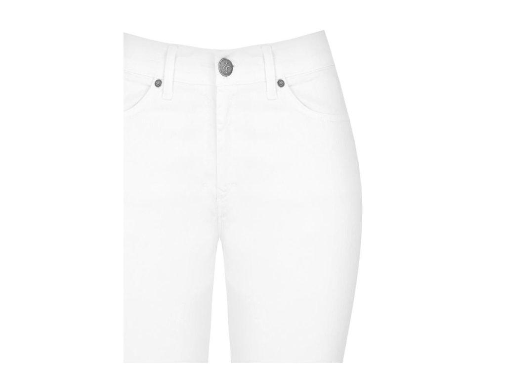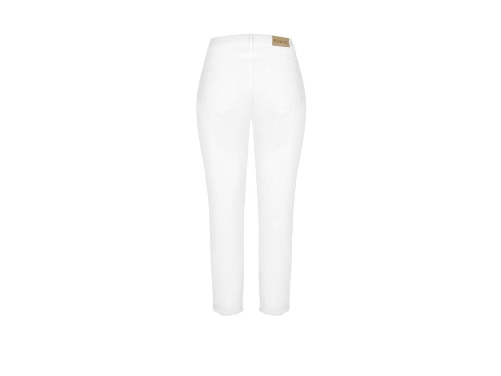 Bílé dámské džíny nejsou jen letním kouskem – můžete je nosit po celý rok. Jsou velmi pohodlné, elastické a ušité pro plnoštíhlé ženy. Jsou téměř ze 100% bavlny a majú klasické zapínání na zip a knoflík. Mají funkční kapsy vpředu i vzadu a spodní okraje jsou jemně roztřepené. Díky poutkům na pásek si do nich můžete bez obav přidat pásek nebo třeba šátek jako stylový detail.