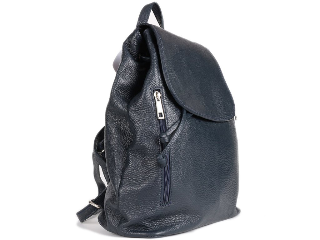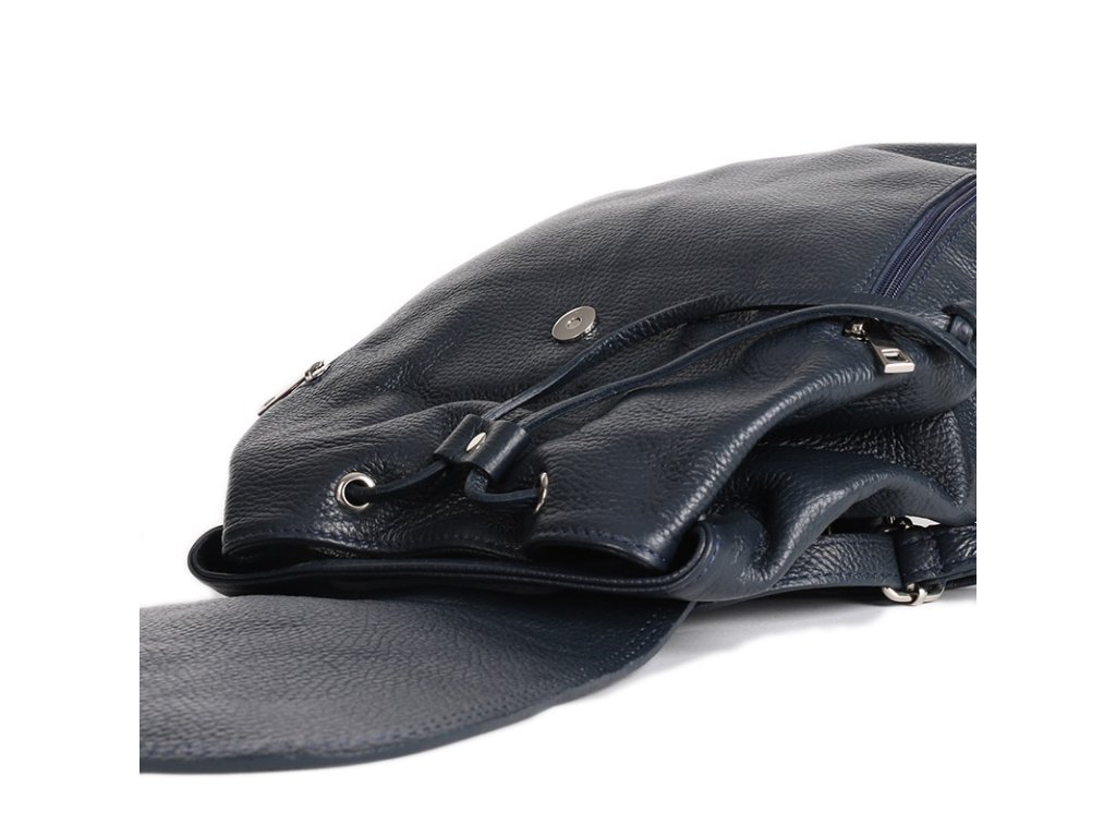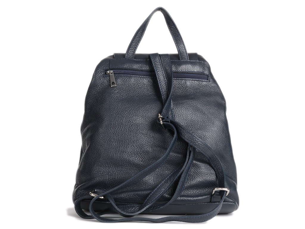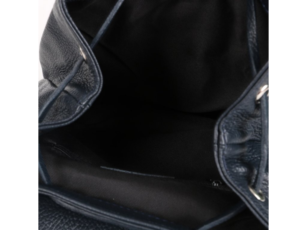 Tento jedinečný kožený batoh bude trendy pořád. Boční strany zdobí 2 praktické kapsy na zip (rozměry: šířka 13 cm, výška 15 cm). Vnitřek je podšitý látkou a obsahuje 1 hlavní komoru, 2 otevřené kapsy a 1 kapsu na zip. Kování má tmavou barvu. Hlavní zapínání je na stahovací šňůrku a magnet. Popruhy jsou regulovatelné a mají maximální délku 85 cm. Batoh je šitý z pravé hrubé kůže v Itálii 🇮🇹.