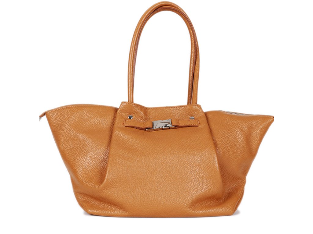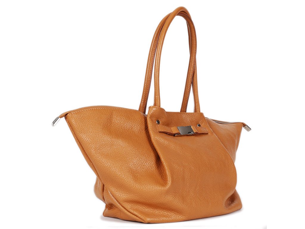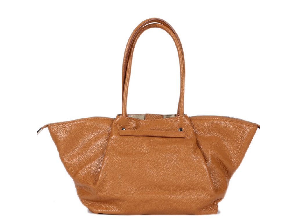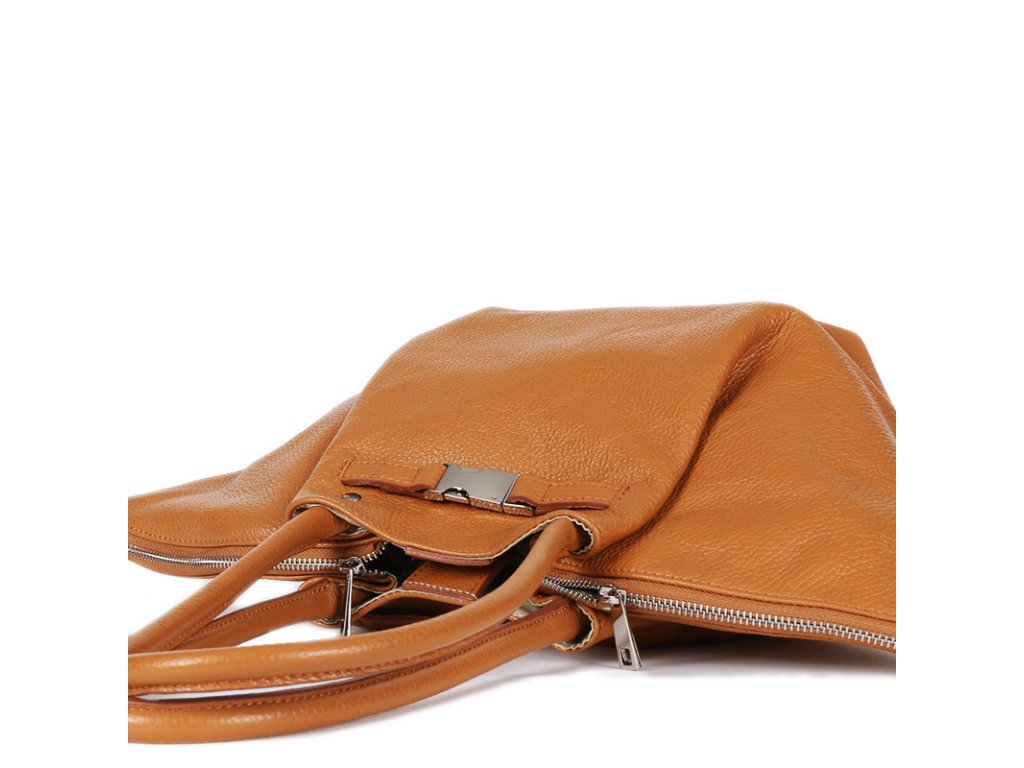 Tato camel kabelka kombinuje elegantní a praktický design, který je ideální pro každodenní použití. Je vyrobena z pravé camel kůže, což jí dodává luxusní vzhled a pevnost. Má klasický tvar tote bag s pevnými rukojeťmi, které umožňují pohodlné nošení na rameni i v ruce.