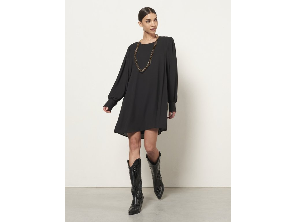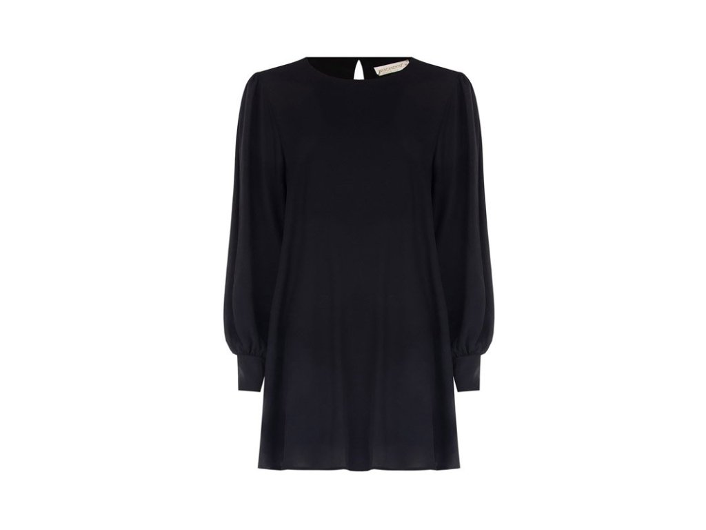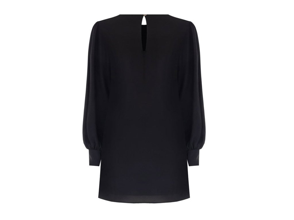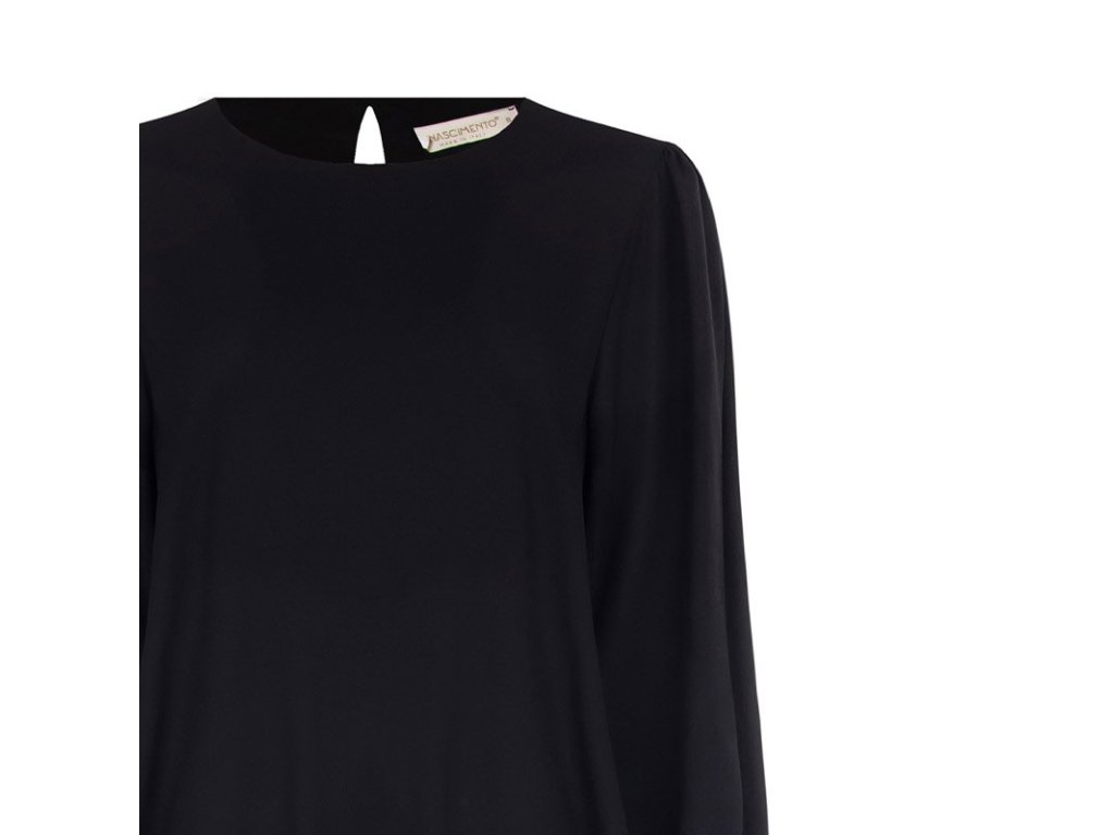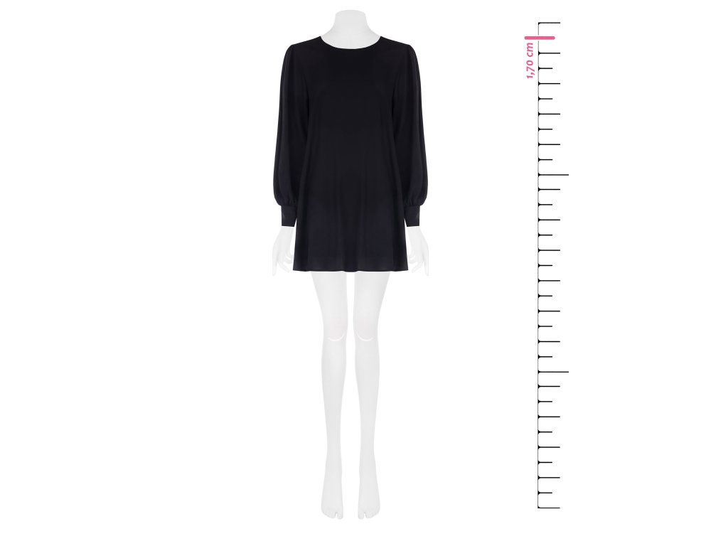 Další nadčasový kousek do dámského šatníku – černé šaty s úžasným áčkovým střihem. Zapínají se na knoflík na zadní straně. Hlavními přednostmi těchto šatů jsou příjemný materiál a střih, který skvěle padne na všechny typy postav.