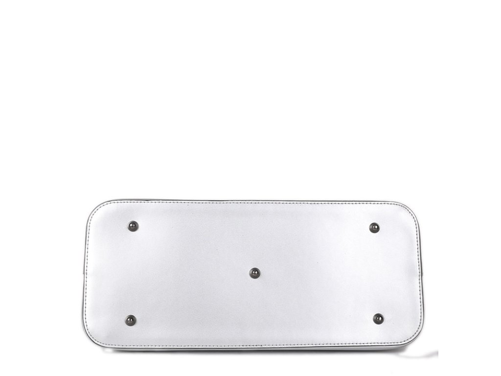 Pokud hledáte elegantnější verzi dámské kožené kabelky, rozhodně vsaďte na model Marita v příjemné stříbrné barvě. Výrazný odstín stříbra v kombinaci s tmavým kováním působí luxusně a nadčasově. Kabelku můžete nosit na rameni i bez dlouhého popruhu, protože ramínka jsou dostatečně dlouhá. Tento oblíbený model vám bude sloužit několik let. Kabelka je prostorná a vyzdvihujeme hlavně krásnou kombinaci barvy s kováním.