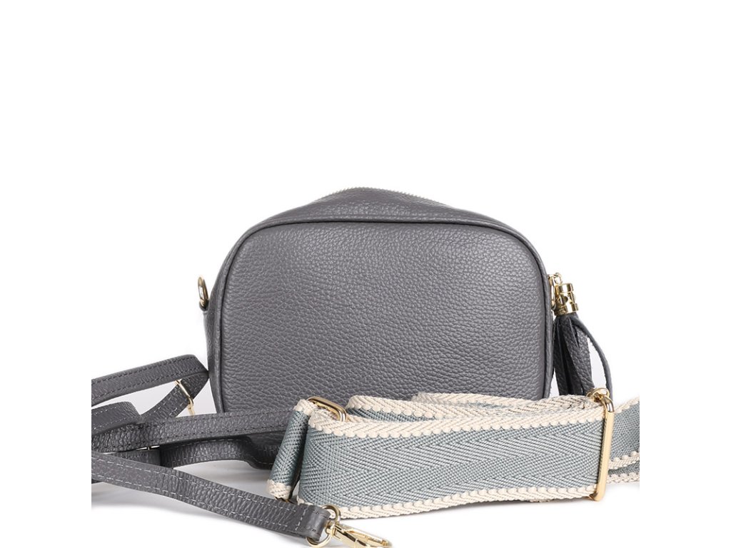 Hledáte kabelku, která zaujme a zároveň nabídne praktičnost? Tato šedá dámská kožená kabelka zaujme především svým barevným popruhem, který kabelce dodává moderní a mladistvý vzhled.
