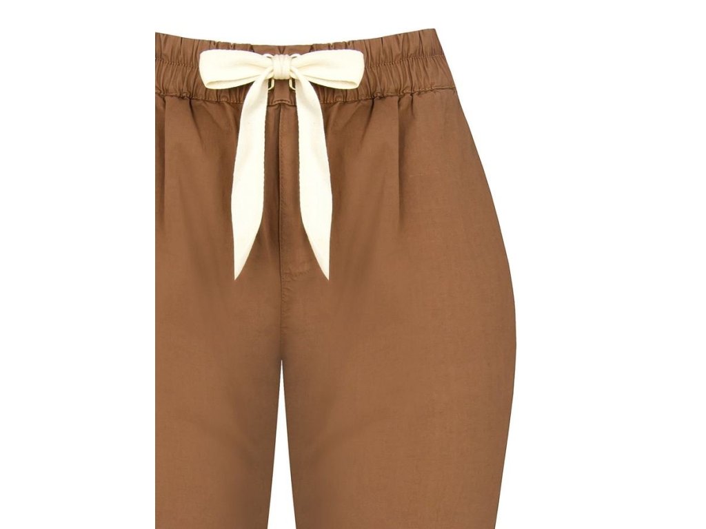 Stylové dámské kalhoty na každý den, které můžete nosit do práce i ve vašem volném čase. Jsou pohodlné, mají pás na gumu a pěkně ho svážete mašlí. Mají příjemný materiál, který dobře padne a také se kalhoty snadno ladí k jakékoliv barvě.