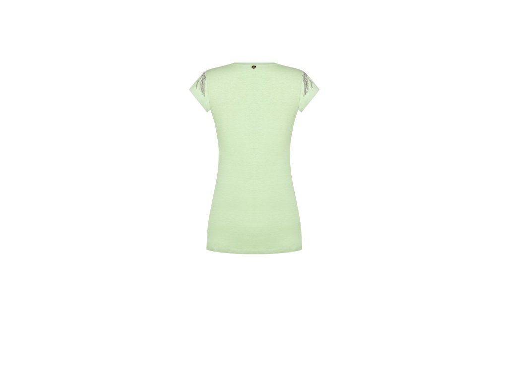 Jednobarevné dámské tričko v nádherné zelené barvě je ušité z kvalitního materiálu, jehož pohodlí a trvanlivost zaručuje 100% bavlna. Na ramenou je ozvláštněno netradičními diamantovými třásněmi, které z klasického trička vytvářejí elegantní módní kousek. Na zadní straně u krku je umístěno malé logo prestižní italské značky Rinascimento. Tento výrobek Rinascimento byl kompletně vyroben v Itálii a je opatřen hologramem, který potvrzuje jeho pravost a exkluzivní kvalitu originálního produktu „MADE IN ITALY“.