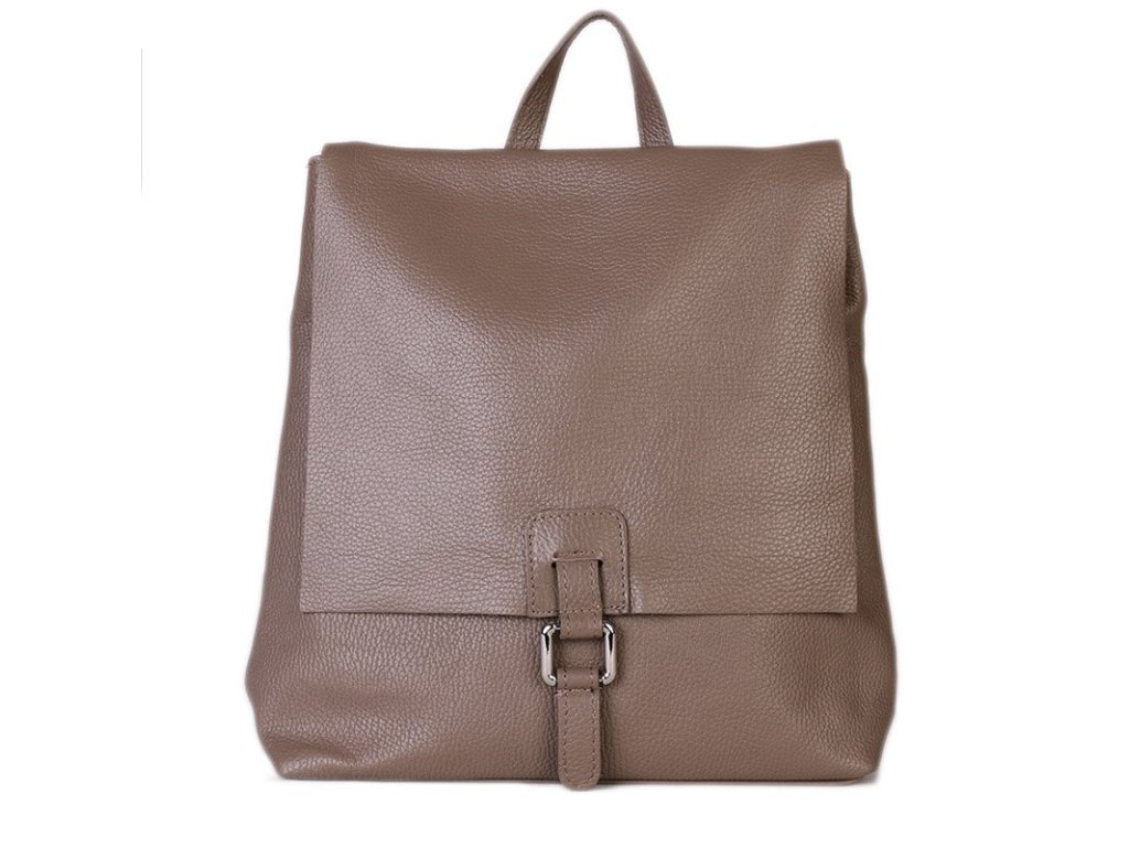 Tento kvalitní batoh a kabelka v jednom v hnědé barvě v odstínu taupe se stříbrným kováním potěší každou klientku, která hledá nadčasový a kvalitní doplněk. Do batohu pohodlně vejde formát A4. Má klasické zapínání na zip a magnet. Rukojeti jsou regulovatelné, takže si je snadno nastavíte podle svých potřeb. Vnitřek tvoří jedna komora s kapsou na zip a otevřenou kapsou na mobil. Na zadní straně batohu je praktická kapsa na zip o rozměrech 16 × 22 cm. Batoh je vyrobený z pravé kůže v Itálii. Je lehký a ideální i pro studentky.