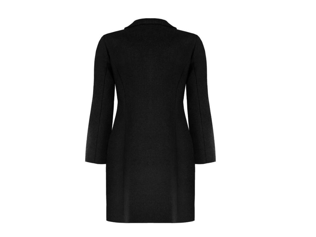Stylový vlněný kabát v černé barvě. Dámský střih, který podtrhne vaše křivky a zvýrazní vaše přednosti. Kabát se zapíná na knoflíky a je vyroben z příjemného kvalitního materiálu. Je podšitý a vhodný na zimu – do práce, na společenské události nebo do kostela. Má také praktická boční kapsy, které jistě oceníte.