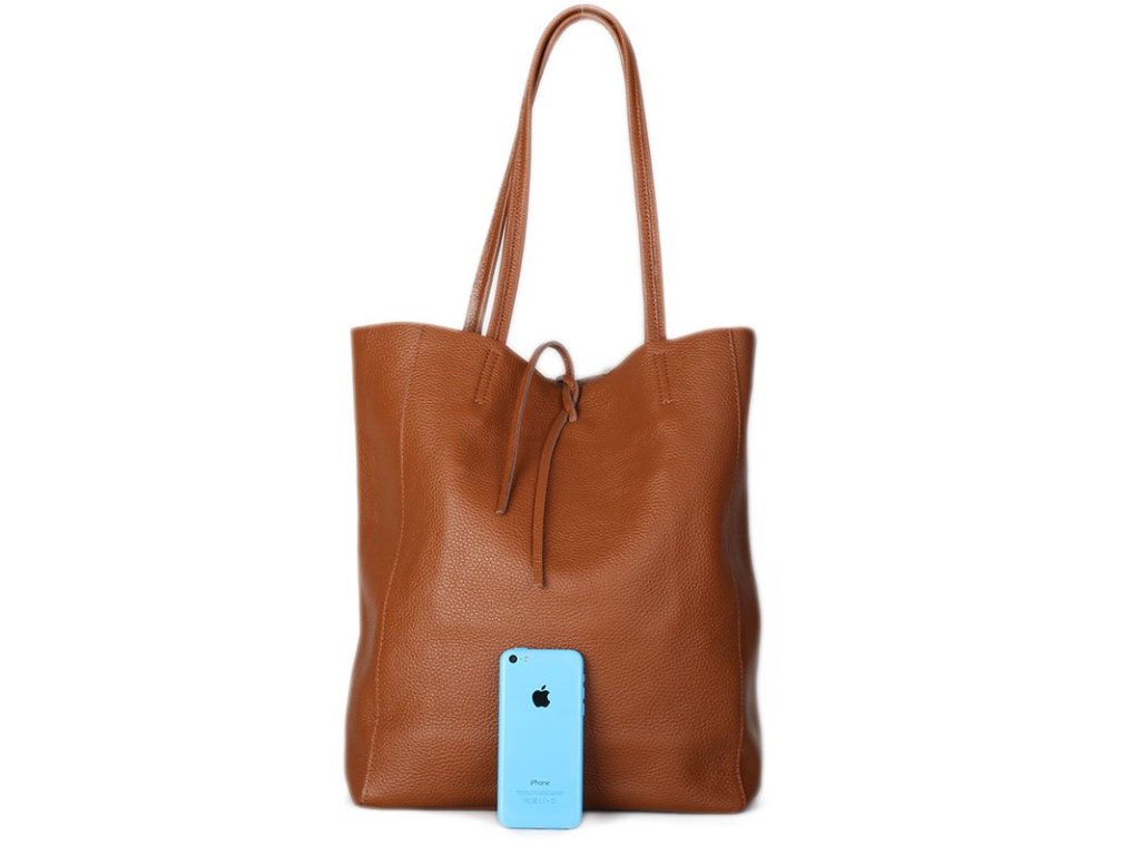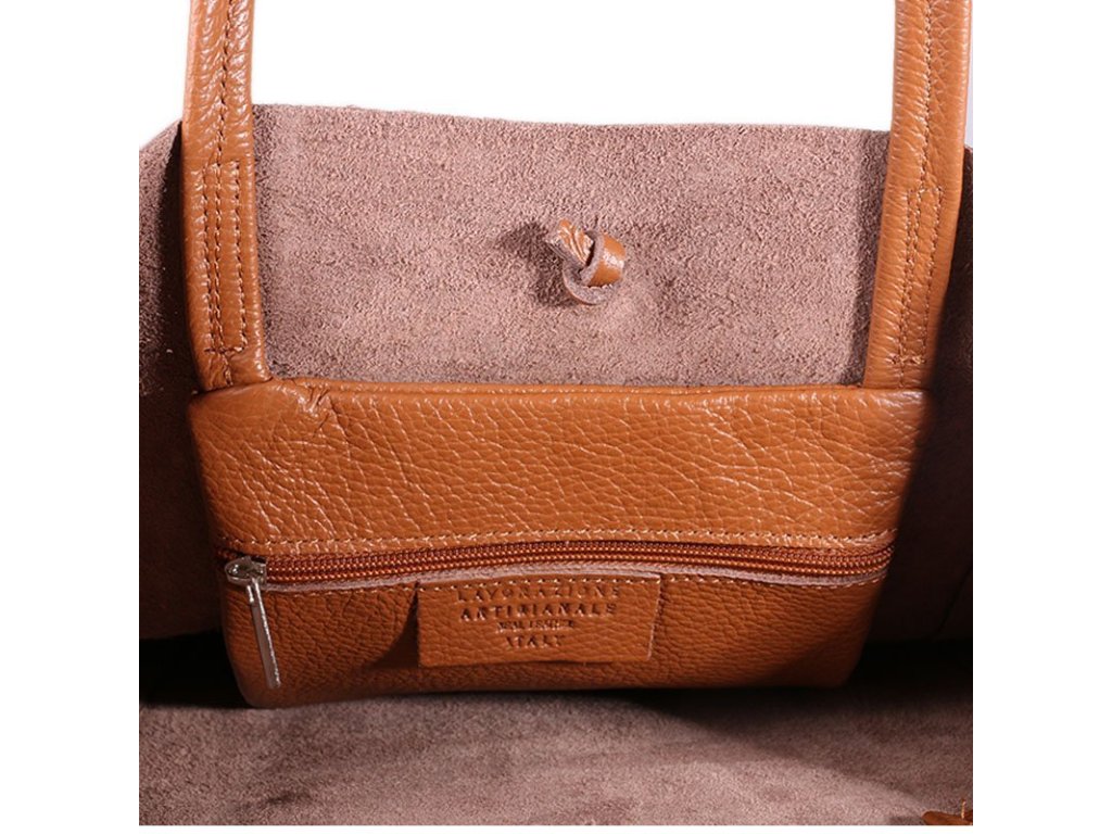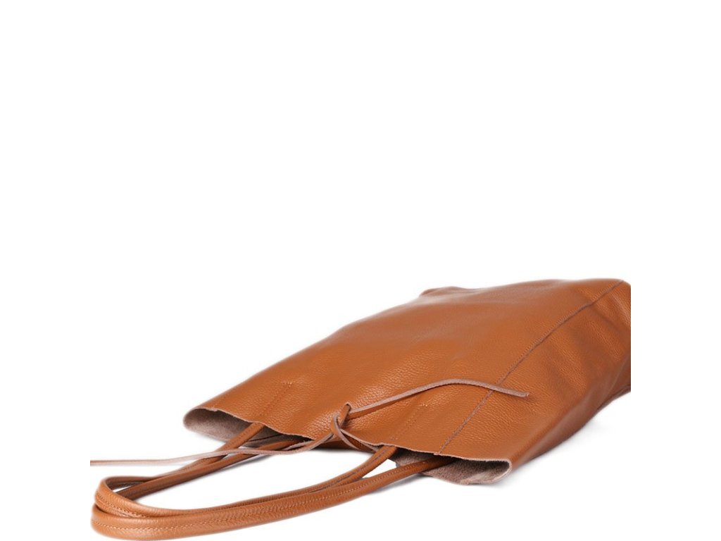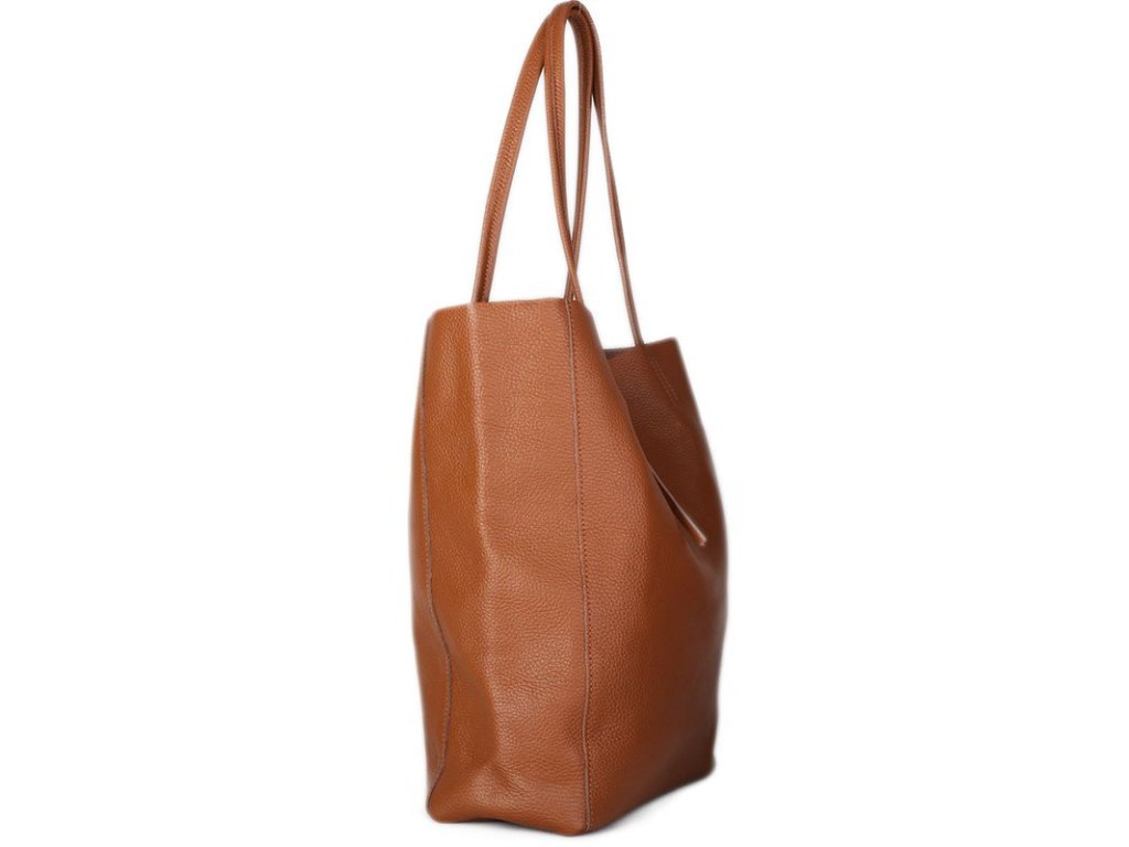 Kabelka je šitá v Itálii z pravé hrubé kůže, která je pevná a díky tomu vydrží dlouho. Můžete ji nosit na rameni i v ruce. Má velkou komoru, do které se vejde vše od dokumentů až po kosmetiku. Na boku je kapsa na zip, vhodná na dokumenty nebo mobil. Kabelka si prázdná svůj tvar neudrží. Barva je hnědá – odstín camel.