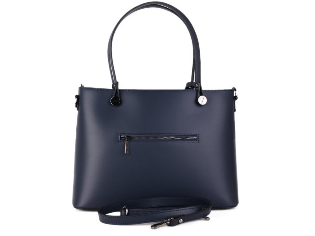 Nabízíme vám praktickou italskou koženou kabelku Vera Pelle v silně modré barvě, která díky svému nezaměnitelnému stylu působí luxusně a nadčasově. Jedná se o prostornou kabelku, u níž vyzdvihujeme hlavně elegantní kombinaci výrazné barvy s kováním v tmavém zlatě. Výška rukojetí umožňuje pohodlné nošení přes rameno, v ruce i na předloktí. Kabelka disponuje také odepínatelným popruhem, díky kterému ji můžete nosit crossbody. Na přední straně najdete odepínatelný přívěsek s logem značky Vera Pelle.