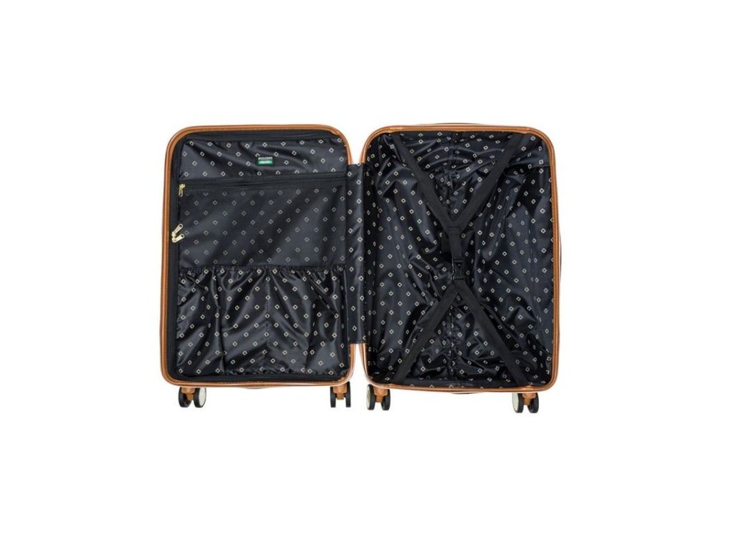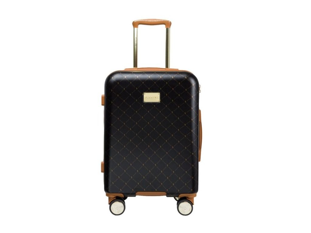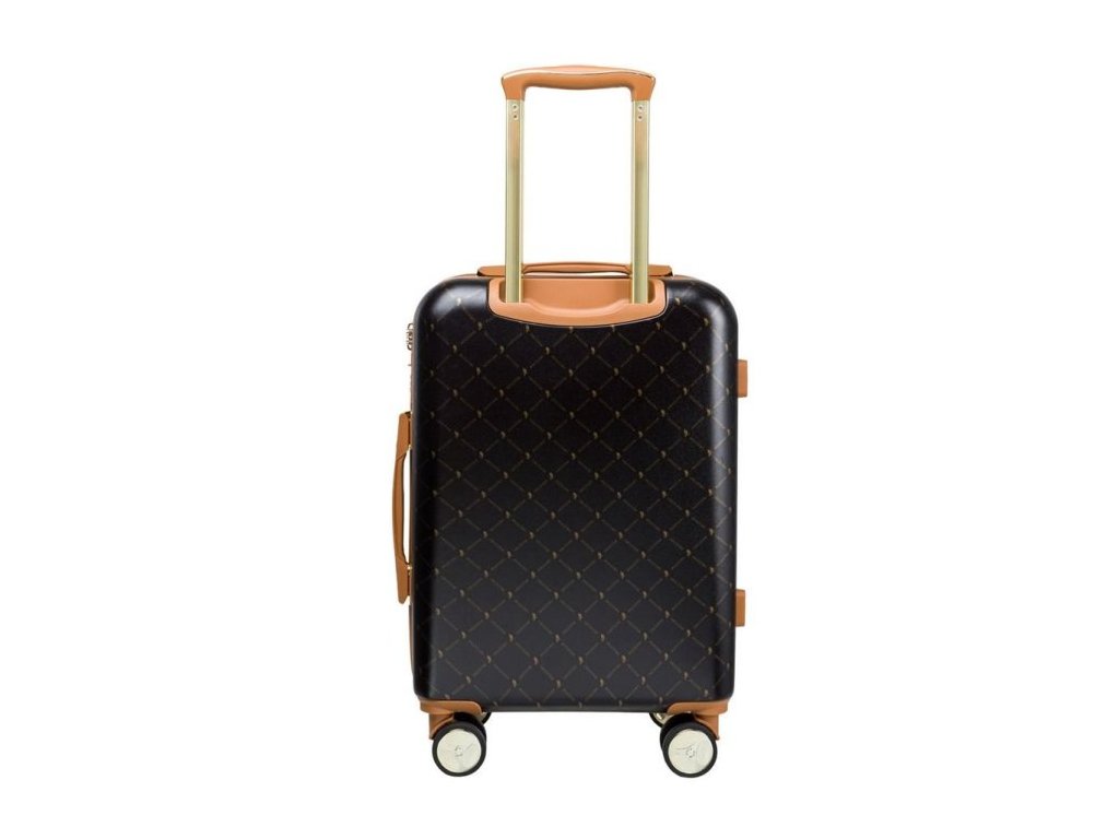 s monochromatickým vzorem, který dodává elegantní vzhled, díky čemuž uspokojí i nejnáročnějšího klienta. Kufr je v černé barvě v kombinaci s hnědou a zlatými doplňky. Kufr se dále vyznačuje kvalitním materiálem, funkčností, ale také dokonalostí zpracování. Zavazadlo je vyrobeno z kvalitního ABS a navíc je pokryto polykarbonátovou fólií.