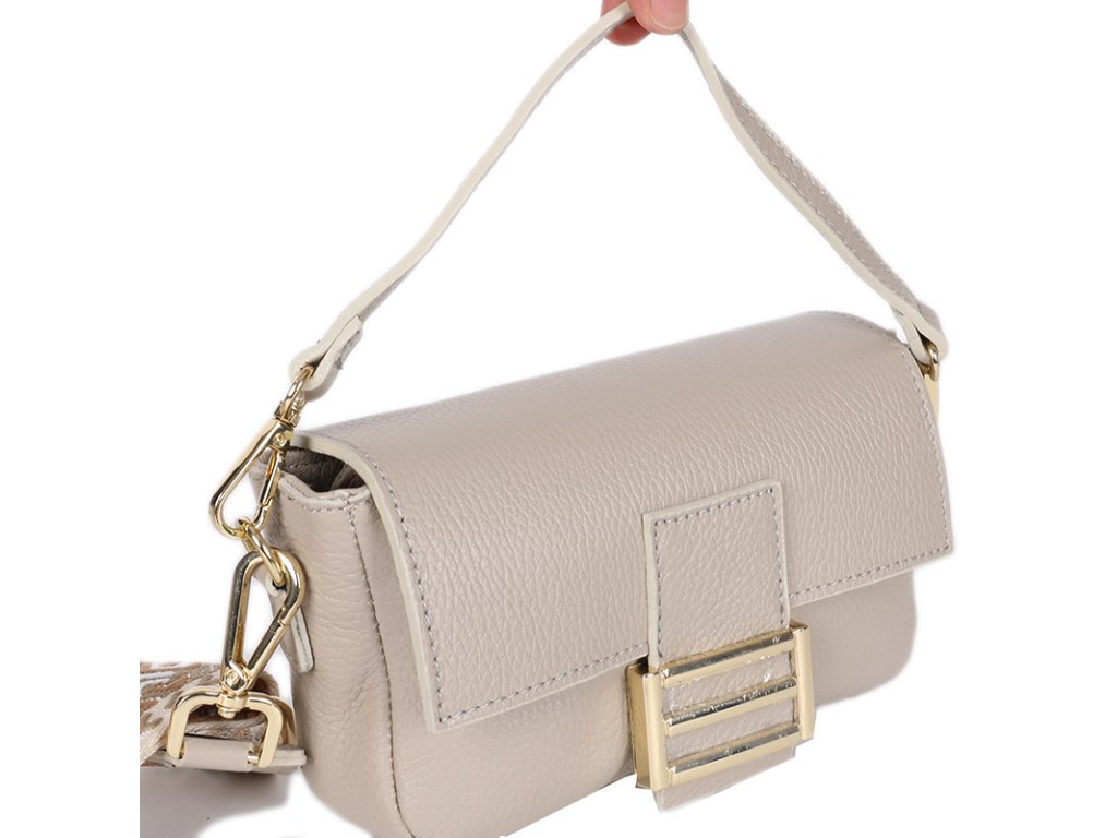 Stylová, praktická a maximálně variabilní kožená kabelka v taupe odstínu z pravé italské kůže. Přestože je malá, hravě pojme mobil, peněženku i základní denní nezbytnosti.