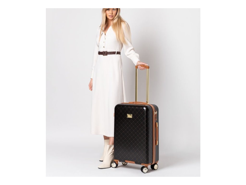 Malý palubní kufr v tomto stylu si jednoduše zamilujete a věřte, že s tímto kufrem budete velice spokojeni nejen kvůli designu, ale hlavně díky kvalitě. Jedná se o prémiový kufr navrhovaný v hollywoodském stylu. Jedná se o klasický design, do kterého byly vsunuty moderní prvky. Právě poutavé zlaté doplňky dělají design oslnivý až přímo poutavý. Zlaté logo, hliníková rukojeť ve zlaté barvě, zlaté doplňky uchvátí na první pohled. Kufr se snadno ovládá díky otočným kolečkům. Kufr má uzamykání na bezpečnostní zámek a zip. Hlavní přihrádka kufru je rozdělena na dvě části. Přední přihrádka je uzavřena chlopní se síťovanou kapsou, což rozhodně usnadní organizaci zavazadel. Druhá přihrádka má elastické upevňovací popruhy pro připevnění například oblečení, takže obsah přežije cestu v perfektním stavu. Kufr je navíc vybaven vnitřní, zipovou kapsou pro uložení menších předmětů, jako jsou doklady.