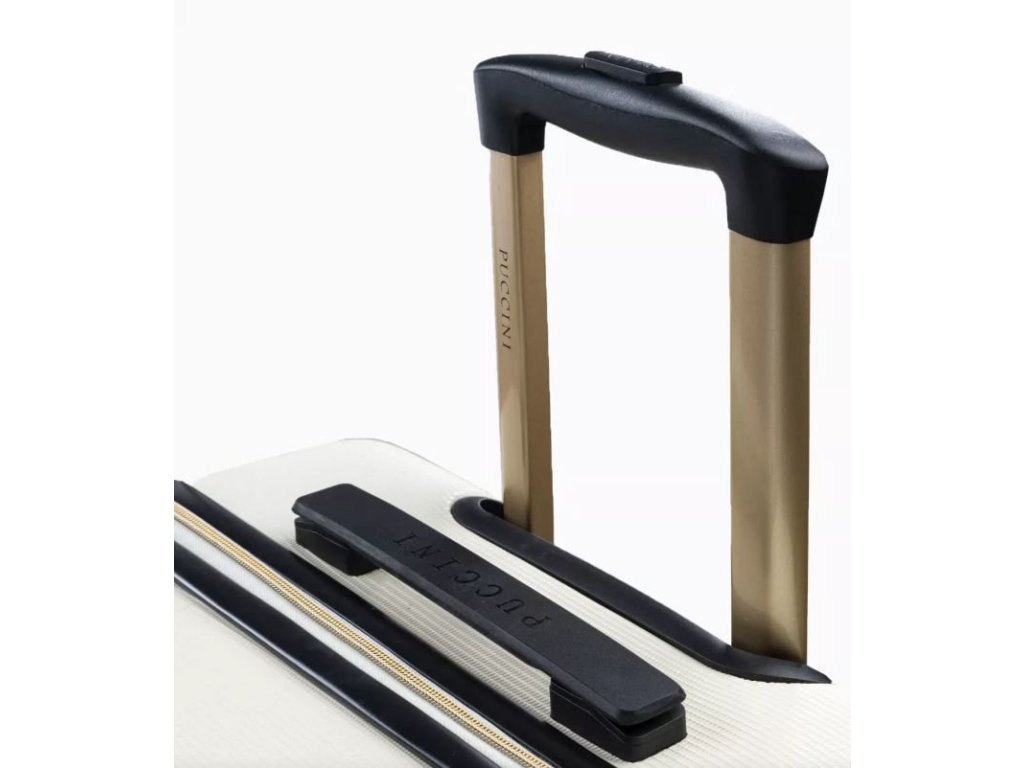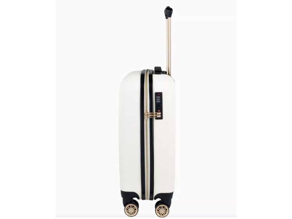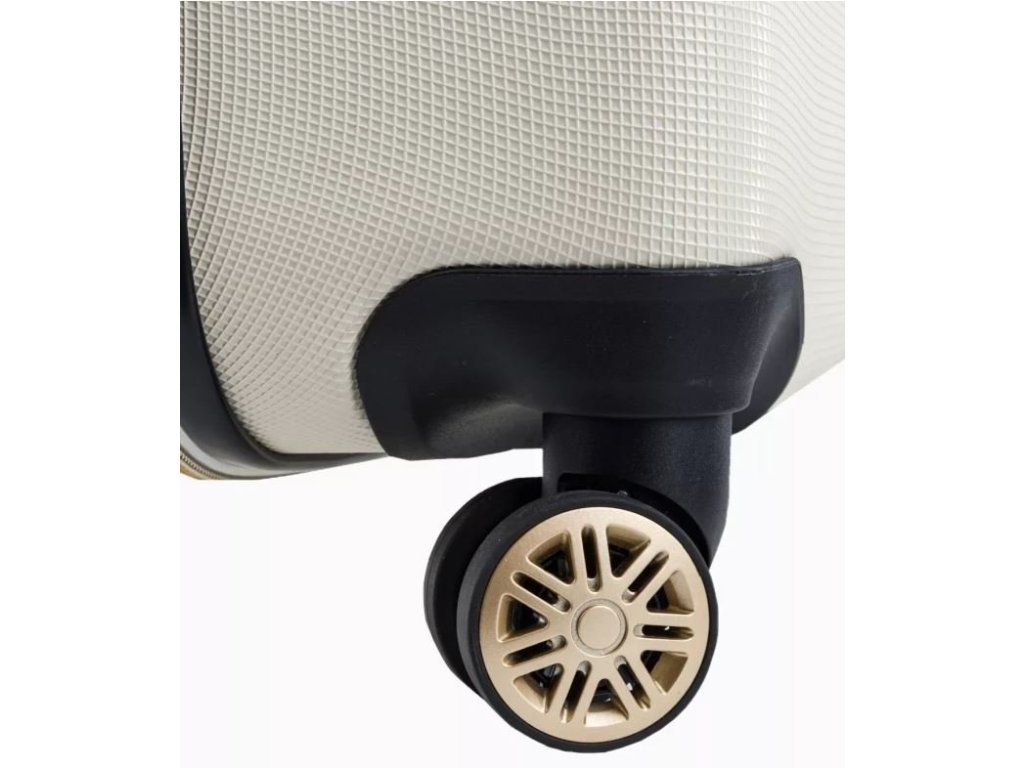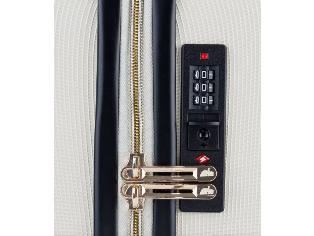 Malý palubní kufr v tomto stylu si jednoduše zamilujete a věřte, že s tímto kufrem budete velice spokojeni nejen kvůli designu, ale hlavně díky kvalitě. Jedná se o prémiový kufr navrhovaný v hollywoodském stylu. Jedná se o klasický design, do kterého byly vsunuty moderní prvky. Právě poutavé zlaté doplňky dělají design oslnivý až přímo poutavý. Zlaté logo, hliníková rukojeť ve zlaté barvě, zlaté doplňky uchvátí na první pohled. Kufr se snadno ovládá díky otočným kolečkům. Kufr má uzamykání na bezpečnostní zámek a zip. Hlavní přihrádka kufru je rozdělena na dvě části. Přední přihrádka je uzavřena chlopní se síťovanou kapsou, což rozhodně usnadní organizaci zavazadel. Druhá přihrádka má elastické upevňovací popruhy pro připevnění například oblečení, takže obsah přežije cestu v perfektním stavu. Kufr je navíc vybaven vnitřní, zipovou kapsou pro uložení menších předmětů, jako jsou doklady.