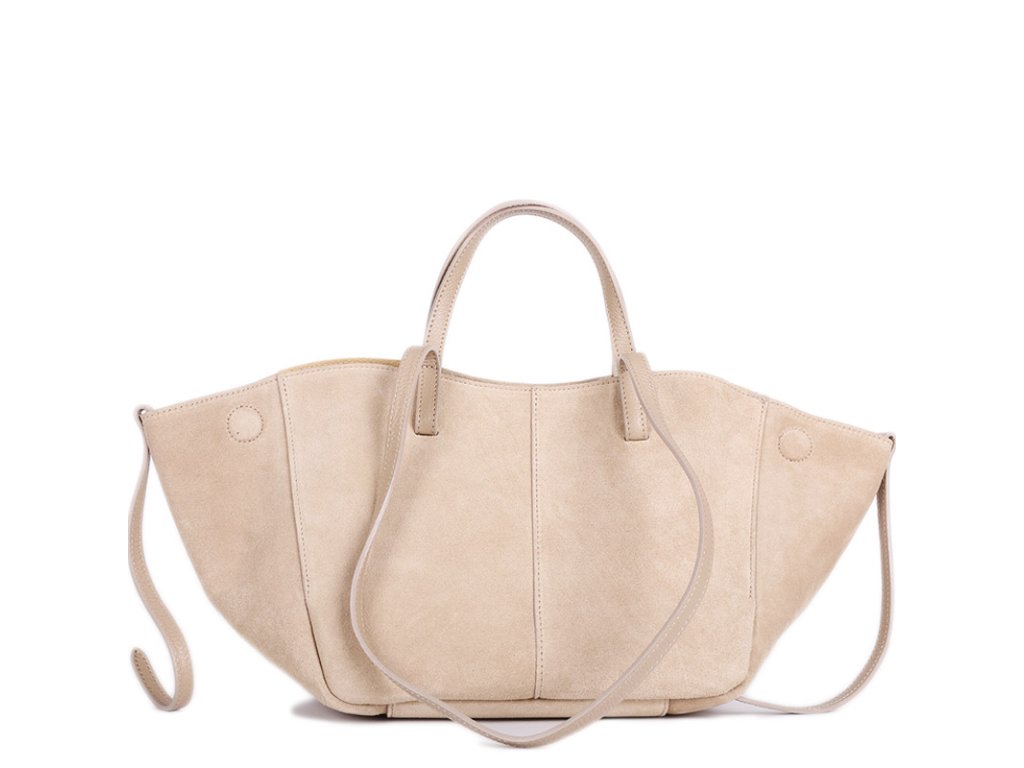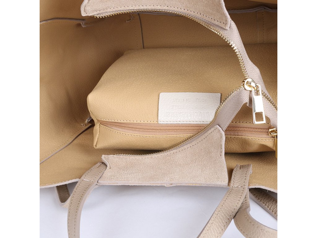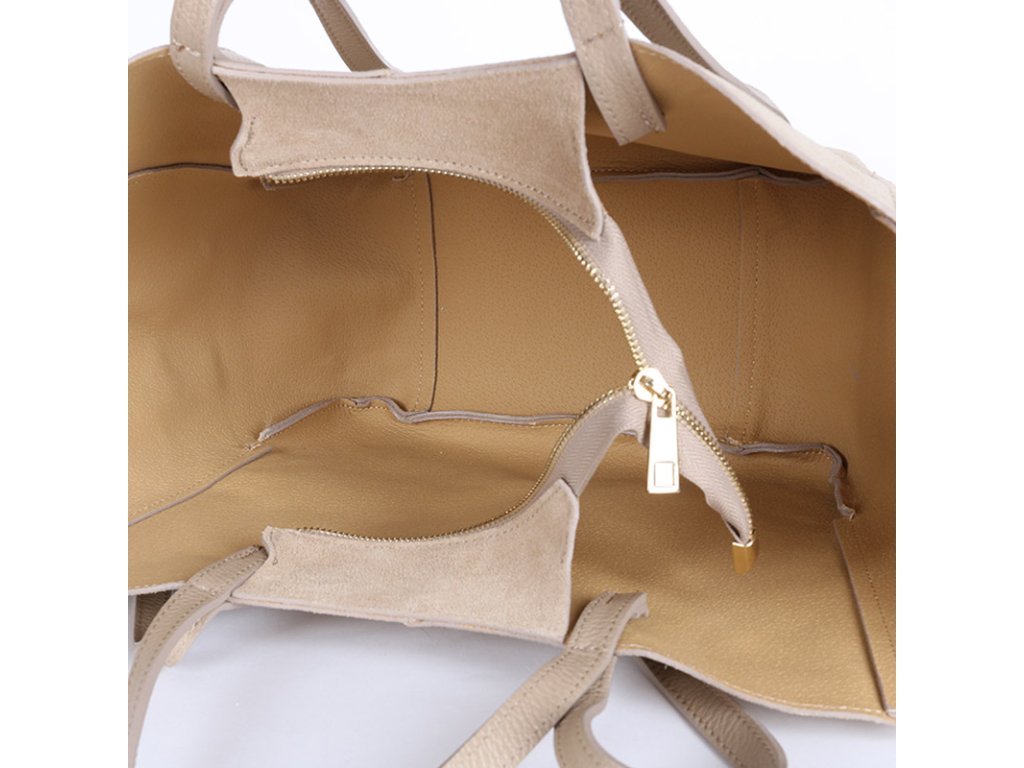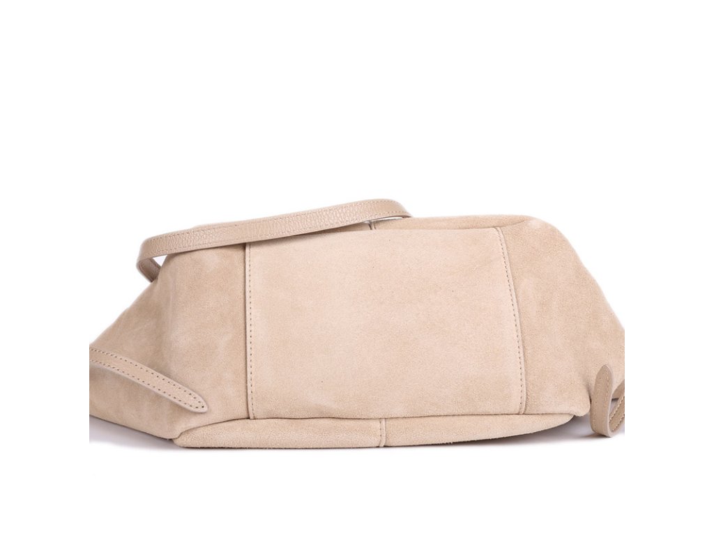 Představujeme vám dámskou stylovou kabelku z pravé semišové kůže v béžové barvě, která je v této sezóně naprostým must-have kouskem. Kabelka má velmi praktický tvar – po stranách jsou magnety, díky kterým si ji můžete jednoduše rozšířit nebo zúžit. Pokud potřebujete více prostoru, stačí magnety odepnout a kabelka se přizpůsobí.