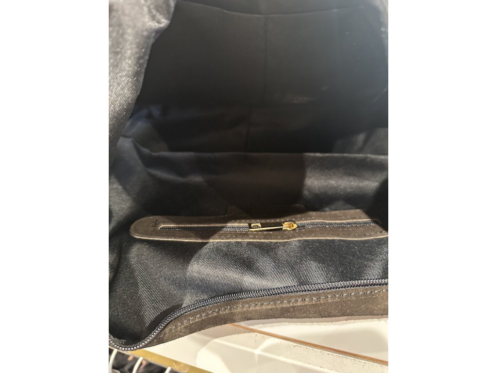 Hlavní prostor kabelky se uzavírá praktickým zipem, takže obsah zůstává dobře chráněn. Tvar kabelky je měkký a přirozeně splývavý, což krásně podtrhuje semišový materiál.